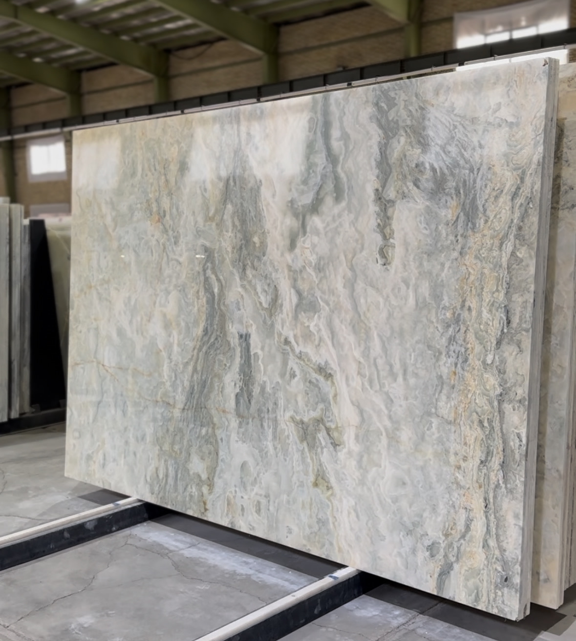سنگ مرمر سبز آبی از سنگ هایی می باشد که به دلیل رنگ سبز و آبی آن به ندرت یافت می شود. این سنگ در بیشتر مواقع به صورت اسلب بی موج و به صورت بوک مچ و فور مچ استفاده می شود.